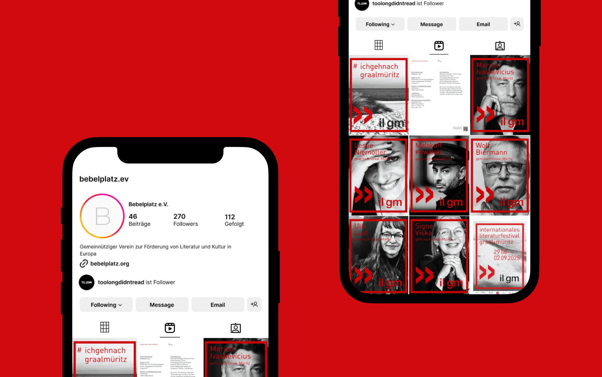 In the end, we based our design on a draft by Veruschka Götz and, in consultation with her, adapted her poster design for the social media presence of Bebelplatz.